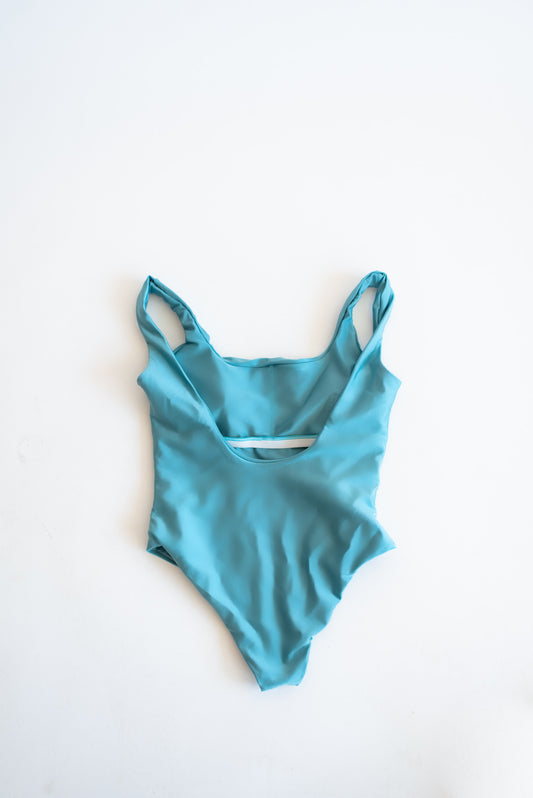 Scoop Back One Piece Swimsuit Aqua Shimmer